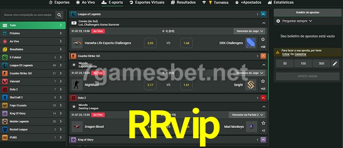 O RRvip oferece uma grande seleção de opções de apostas em e-sports com probabilidades competitivas